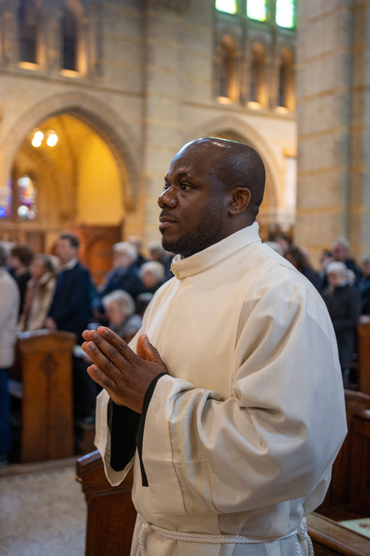 De feestelijke zang van de Bavocantorij van het kathedrale koor, onder leiding van Rick Muselaers en met titulair organist Ton van Eck, maakte de viering bijzonder. Diakens Philip Weijers en Nico Smit assisteerden. De familie van Francis in Nigeria was verbonden via Kathedraal TV, waar ook Engelstalig commentaar was voorzien, zodat zij alles konden meemaken. Priesterstudenten dienden de wijdingsmis, samen met misdienaars van de kathedraal, de Obrecht en Almere.