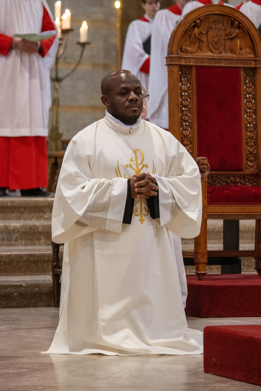De feestelijke zang van de Bavocantorij van het kathedrale koor, onder leiding van Rick Muselaers en met titulair organist Ton van Eck, maakte de viering bijzonder. Diakens Philip Weijers en Nico Smit assisteerden. De familie van Francis in Nigeria was verbonden via Kathedraal TV, waar ook Engelstalig commentaar was voorzien, zodat zij alles konden meemaken. Priesterstudenten dienden de wijdingsmis, samen met misdienaars van de kathedraal, de Obrecht en Almere.