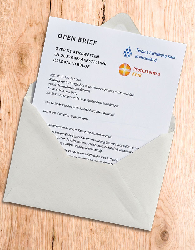De Eerste Kamer behandelt naar verwachting in april de Wet invoering tweestatusstelsel en de Asielnoodmaatregelenwet. De twee vertegenwoordigers van de Rooms-Katholieke Kerk in Nederland en de Protestantse Kerk in Nederland stellen dat deze wetten “haaks staan op de menselijke waardigheid”.
